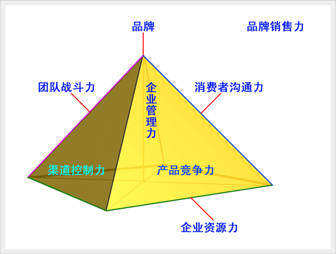 3、企业管理力:企业管理力的高度是品牌金字塔的中垂线,决定着品牌能够成长到的高度